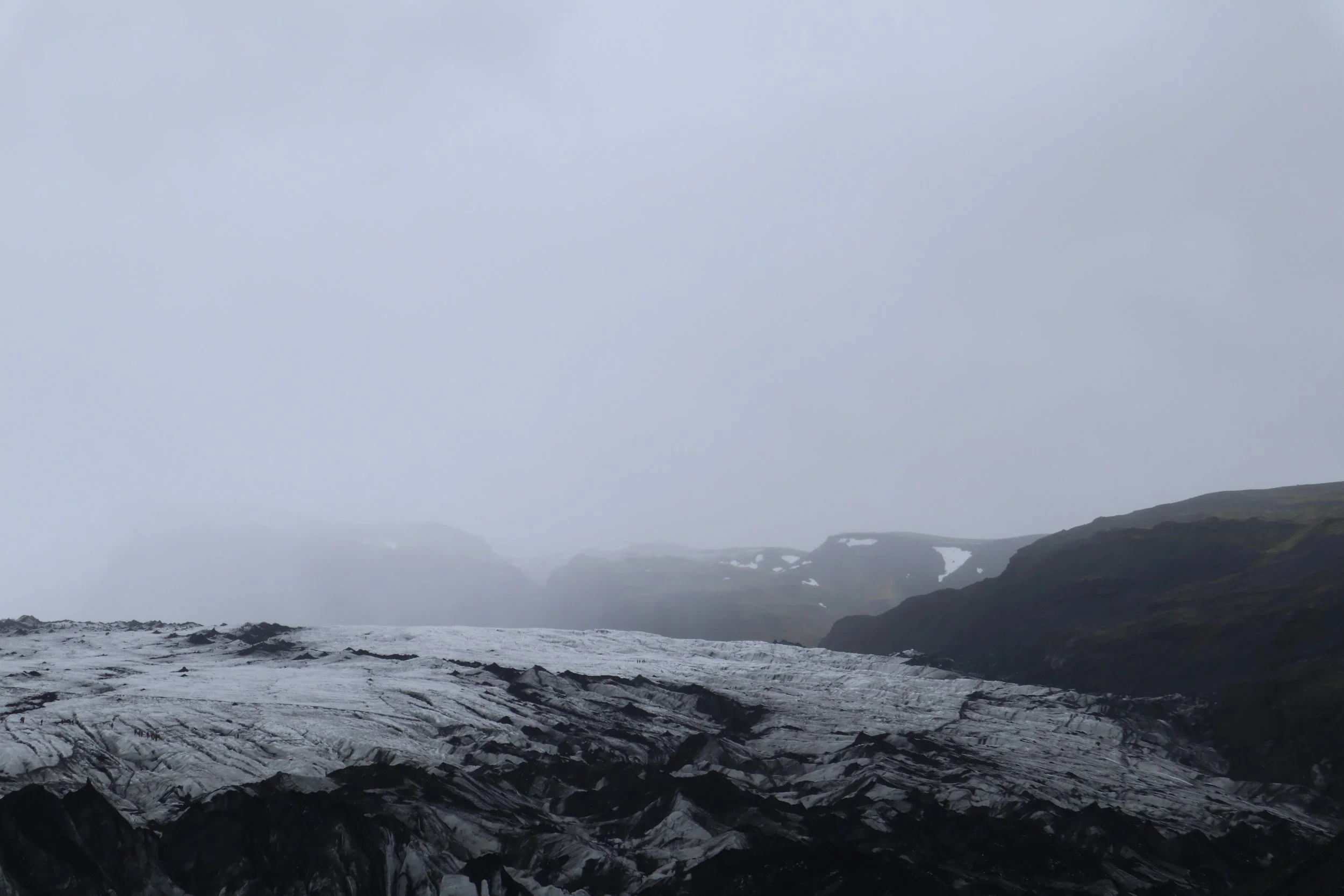 It is interesting that we are both working with vibrations, sound waves, but at different frequencies. I tell Veronique about my recent research and that of my colleagues on Grímsvötn. We have found that the ice sheet above the subglacial lake in Grímsvötn vibrates continuously like a membrane. My research group has also discovered a very weak vibration signal that the large outlet glaciers in southern Vatnajökull, Síðujökull and Skeiðarárjökull, cause every year in the fall. We are still investigating the source of these vibrations. A pilot sent me a picture of Síðujökull this summer. He had never seen it like this before. A field of brownish, soft, slush-ice instead of bluish rock-solid glacial ice.